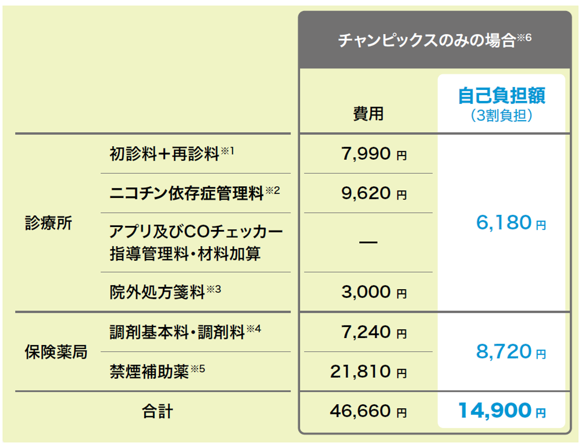 | 2回目〜4回目 | 禁煙指導、呼気CO濃度測定、処方 |