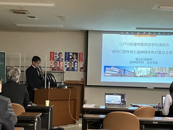 【白水医師】江戸川区歯科医師会で講演を行いました。 2023.04.28 活動報告 白水医師(救急医療センター長 脳神経外科)が江戸川区歯科医師会で講演を行いました。【セミナー名】令和5年第一回学術講習会【日 時】2023年3月22日19:20~【講 演 名】歯科口腔外科と脳神経外科が重なる領域 トップページに戻る お知らせ一覧に戻る