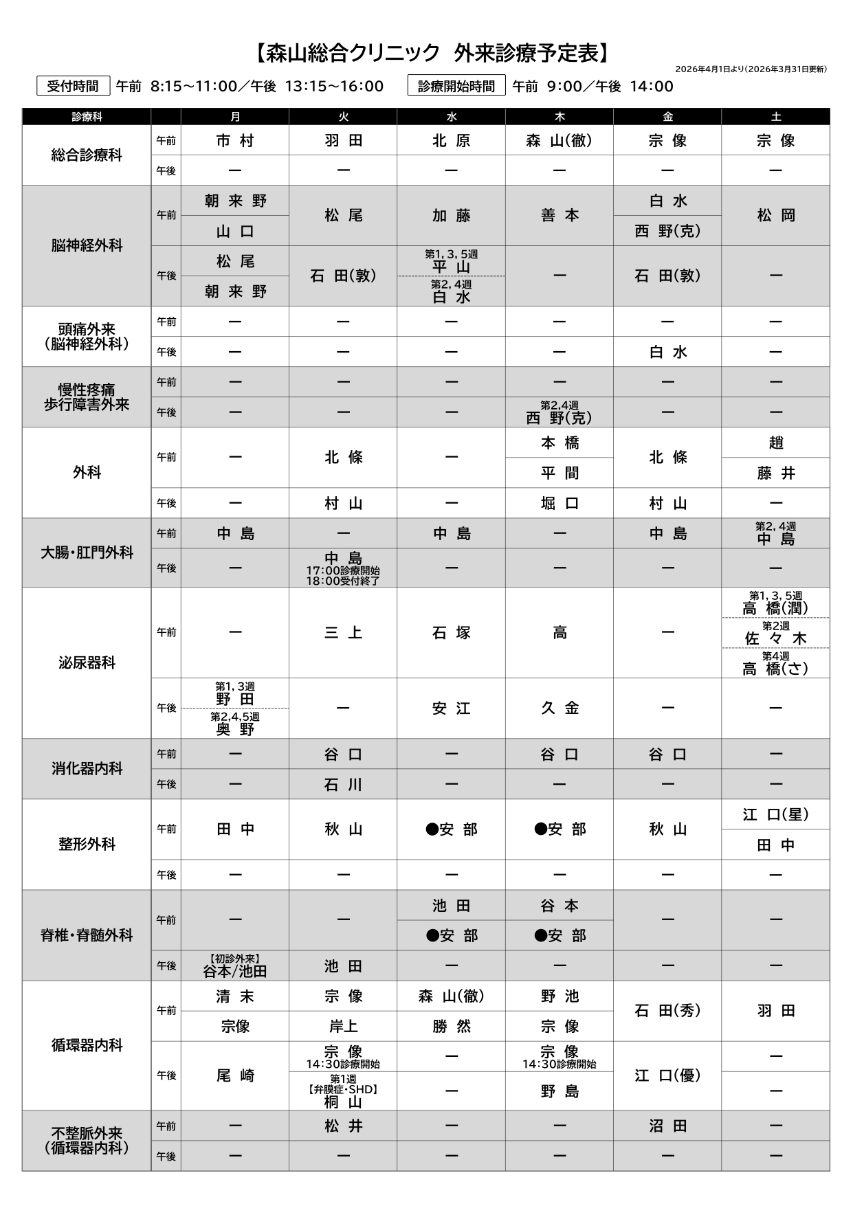 森山(倫) ※完全予約制 9:30 (第2、4のみ) |