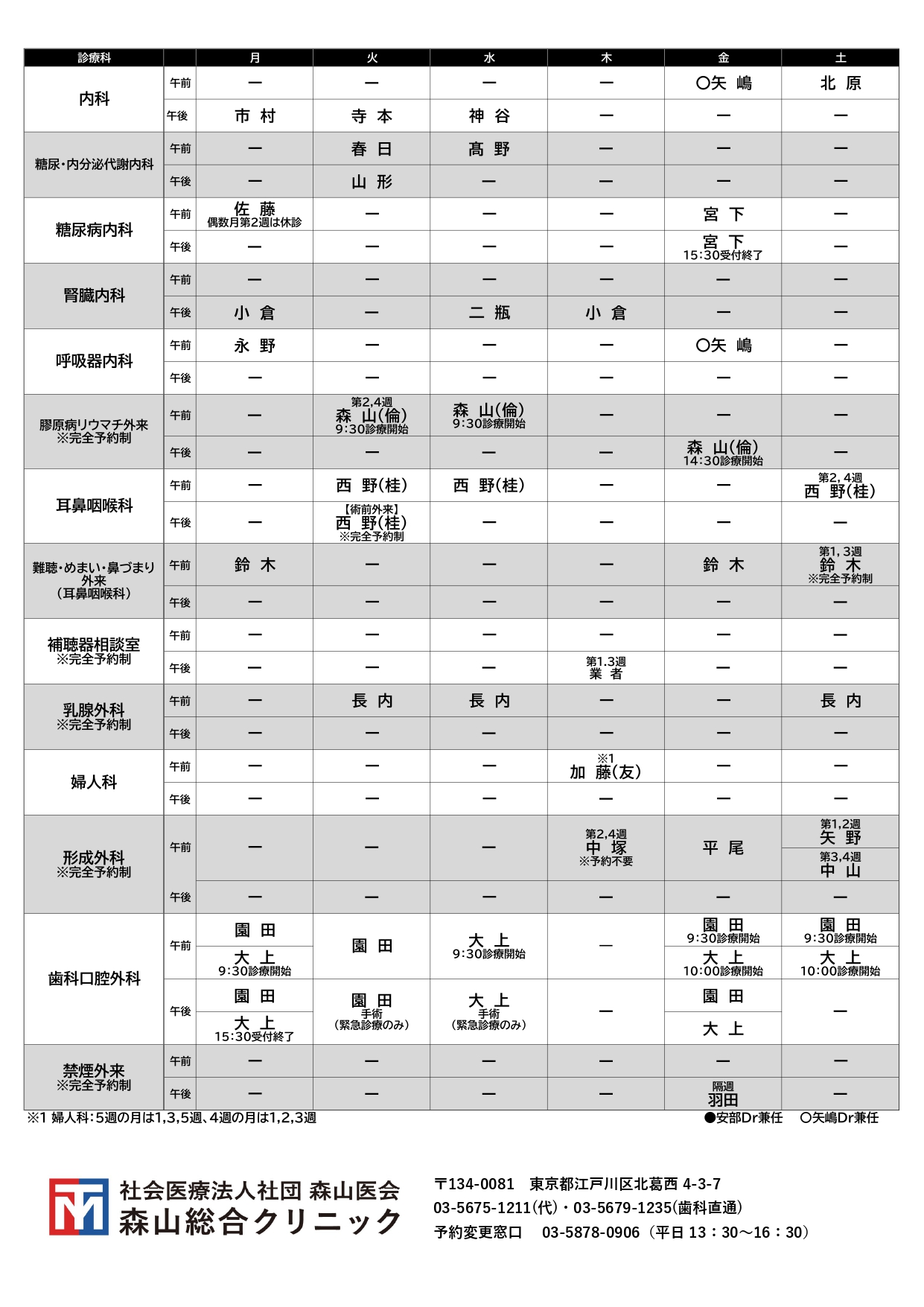 森山(倫) 【膠原病リウマチ外来】 *完全予約制 14:30 |